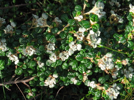 Erect shrub to 2mH x 1.5mW, often less. Rounded leaves. Terminal flower heads surrounded by white floral leaves winter, spring, summer. Hardy shrub in most aspects with well-drained soil. Contrast plant.